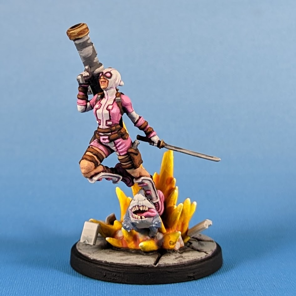 Gwenpool and Jeff the Land Shark painted for Marvel Crisis Protocol by Crab-stuffed Mushrooms