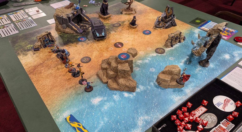 The Infinity Gauntlet Ultimate Encounter is a special scenario that comes packed in with the Thanos character pack, for Marvel: Crisis Protocol. It utilizes the Throne that he comes packed with as a starting position for Thanos to deploy from, a slew of tokens and cards to use during gameplay (more on that later).