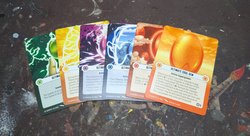 The Ultimate Power Gem: This gem lets Thanos gain 10 power instantly and have up to 15 stocked until the beginning of his next activation.