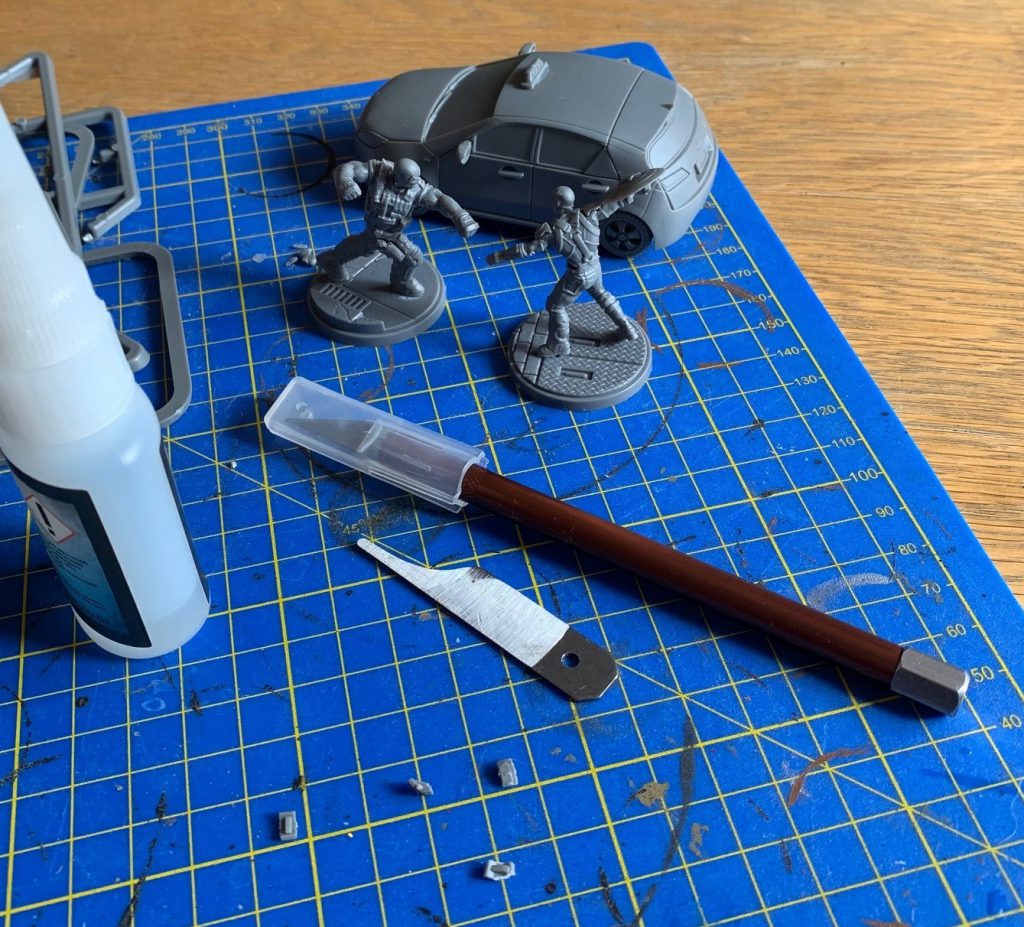 The terrain is fun and evocative of a big city rumble, with cars, traffic lights, and, god help me, I am genuinely looking forward to painting these trashcans and dumpsters. Even the proprietary range rulers are paintable, which is a nice touch.