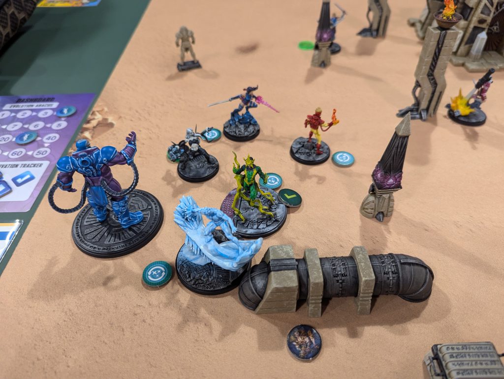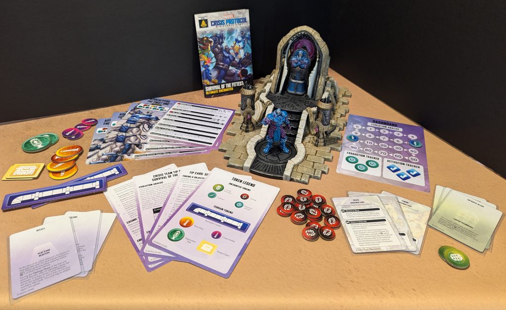 I feel like this set up, with the varying strength of the big bad, is a really smart move. It made the game feel like a close fight until the end, without the Crisis Team feeling like they were fighting insurmountable odds in order to win. Only having to interact with objectives for the first two rounds is nice as well, it splits the game into two different phases. In the first phase, just focus on limiting Evolution Point opportunities and then in the end it all comes down to a big slobber knocker with either Apocalypse defeated or the Crisis Team is down to fewer than three characters.