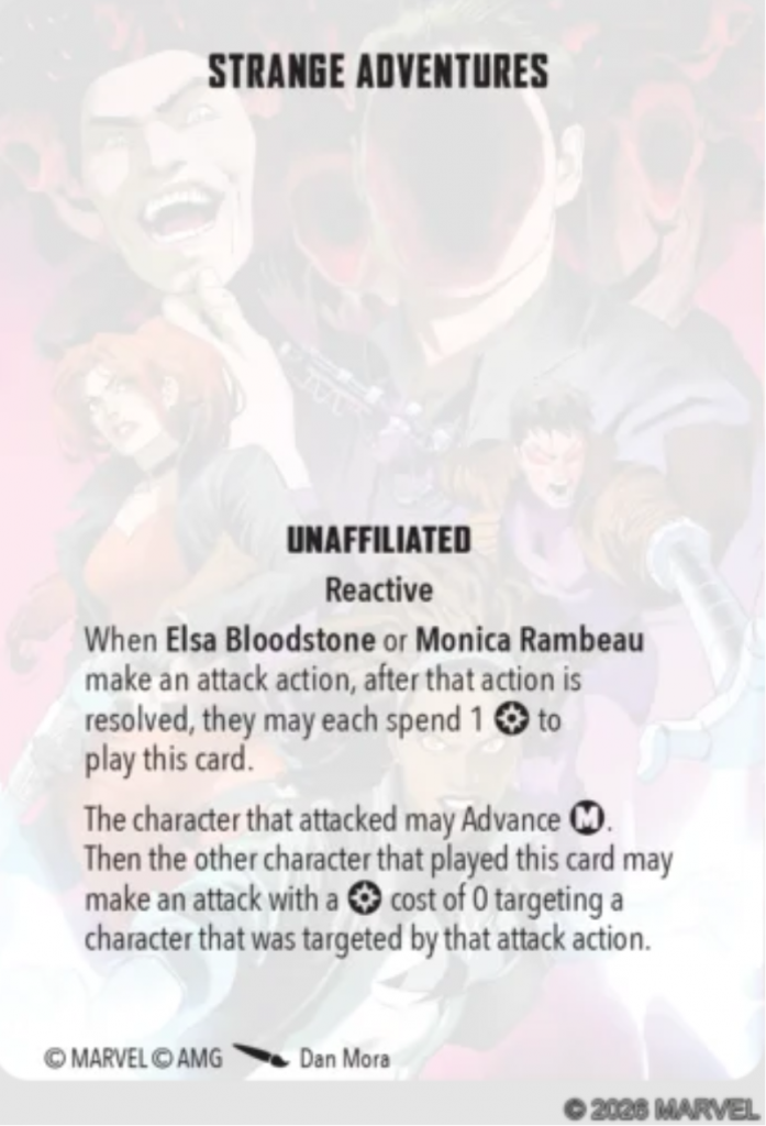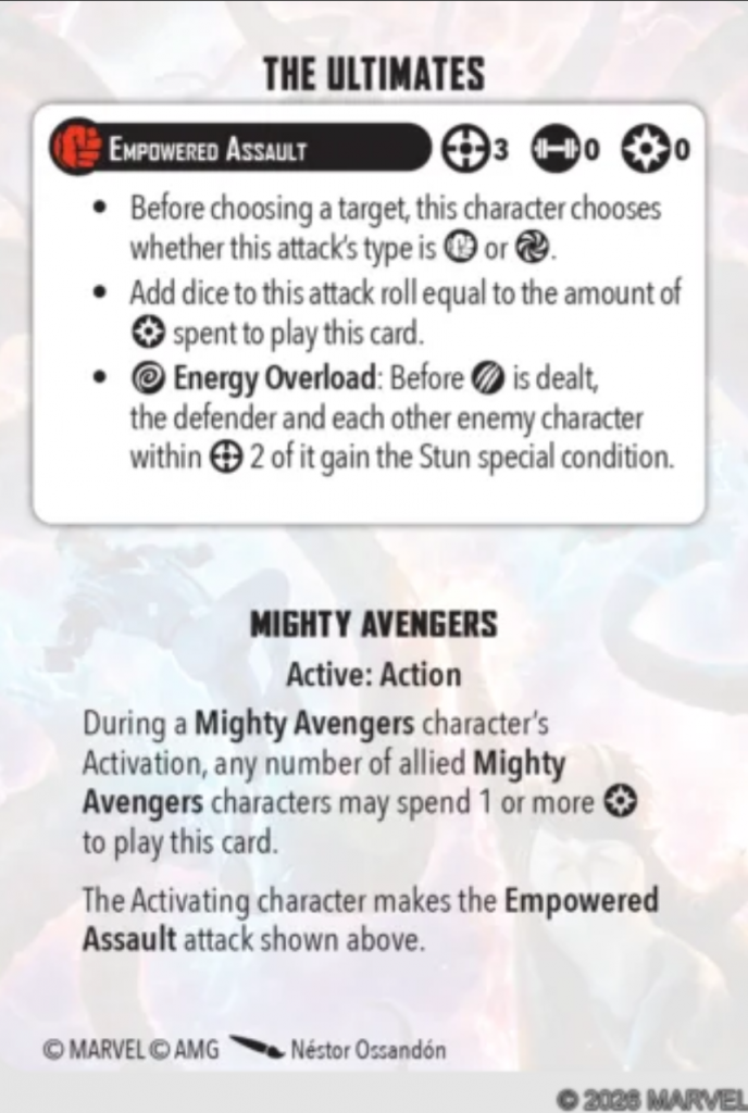 At the time of writing, we are yet to see an Affiliation list. But Atomic Mass Games have hinted towards Captain Marvel, Cosmic Avenger being affiliated - who is a power-trick character through-and-through. So I think there will be a lot of cool tricks packed in with this Affiliation.