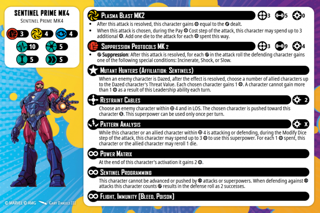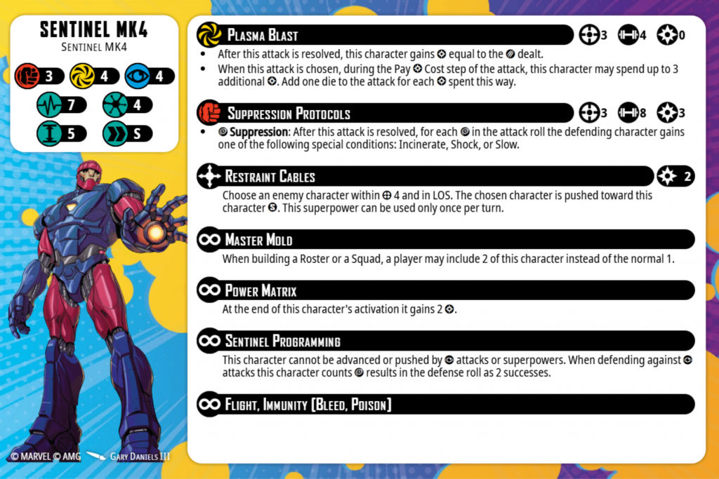 For the Sentinels, a large base and short move is fast enough. It’s the same as Juggernaut, although granted, the only form of movement they have are making actual move actions, which is not what you want your 4 & 5 threats to spend their time doing if you can help it. Plus, Restraint Cables makes it really easy for them to bring targets to them, which saves them from taking move actions.