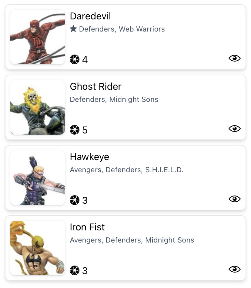 Maybe… MAYBE this one is silly. Daredevil isn’t at his absolute best because he cannot get more than three enemies in range for his spender. Buuuut he is very likely to get three enemies in range for his spender. Hawkeye and Iron Fist can stack six different conditions between them. Ghost Rider brings a couple more. Plus, Iron Fist has the coveted activate-an-enemy-model trick with his Iron Fist. It will be tough to get off because you may not get priority. Although, to be fair, Thor and Bill are likely to get quite a few dazes, so you may end up with priority on an Iron Fist that has the needed eight power to use his namesake.