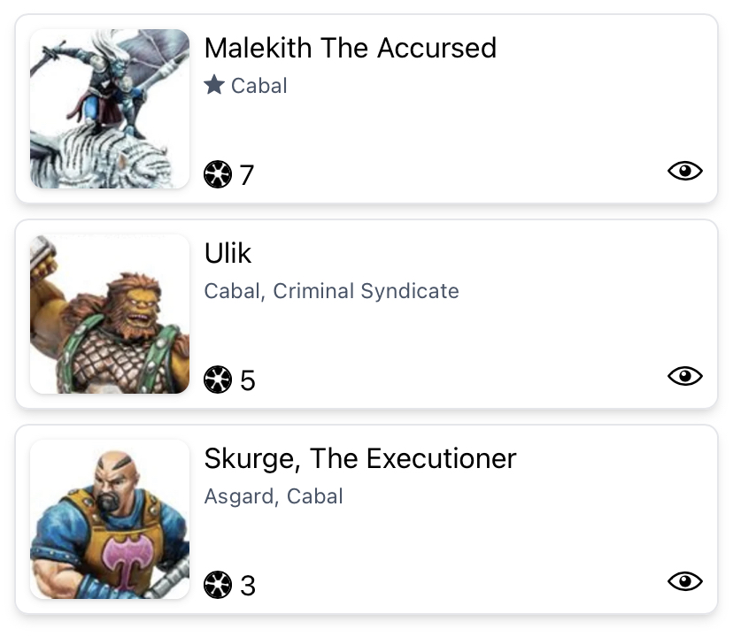 Malekith got nerfed a while back. It was probably a good thing, because he was dominant. Did it go too far? Maybe. Especially with the current power level of six threat models. Still, he’s really good and has some solid counters to Loki and his sandwich crew. Skurge could be substituted for any three threat of choice. I left him in because he’s affiliated and he has a taunt, which could save one of your other models at a key moment.