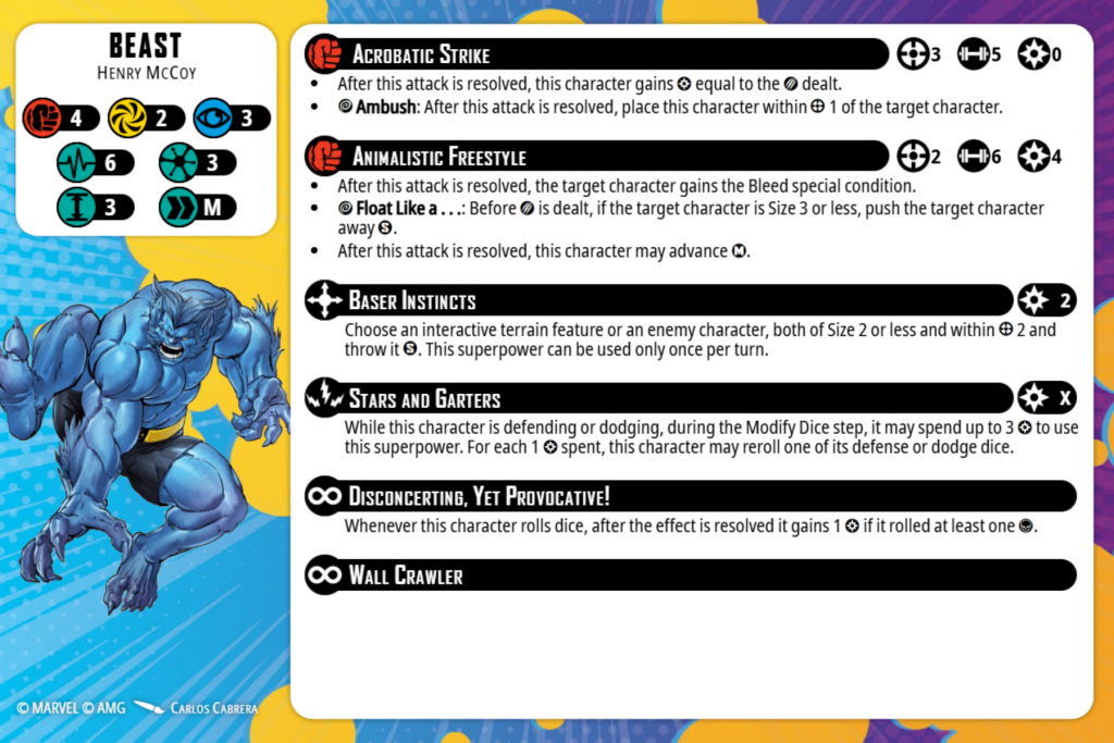There is a To Me, My X-Men trick you can do with medium base models in Uncanny X-Men, but I’ll leave that for a more in-depth guide for another time. Stars And Garters is great, Disconcerting, Yet Provocative is great, Baser Instincts is awesome; Beast is just plain great.