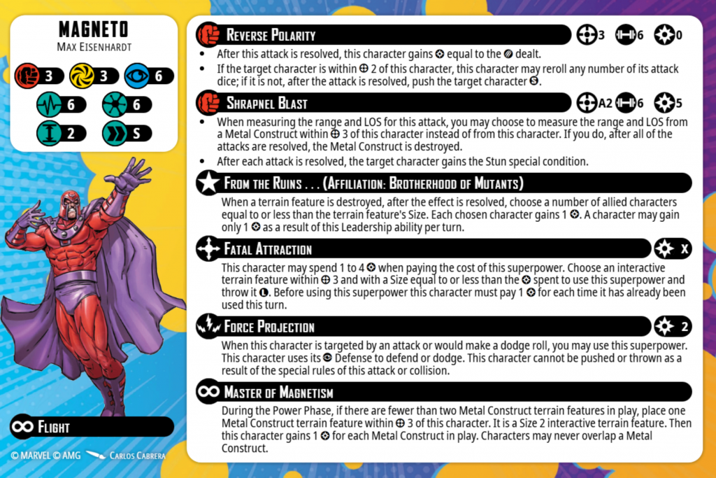 Magneto is widely seen as the best designed character in MCP. The unique feature of throwing terrain in this game is what makes it really catch the eyes of onlookers in the local gaming store. Magneto really takes that up to 11.