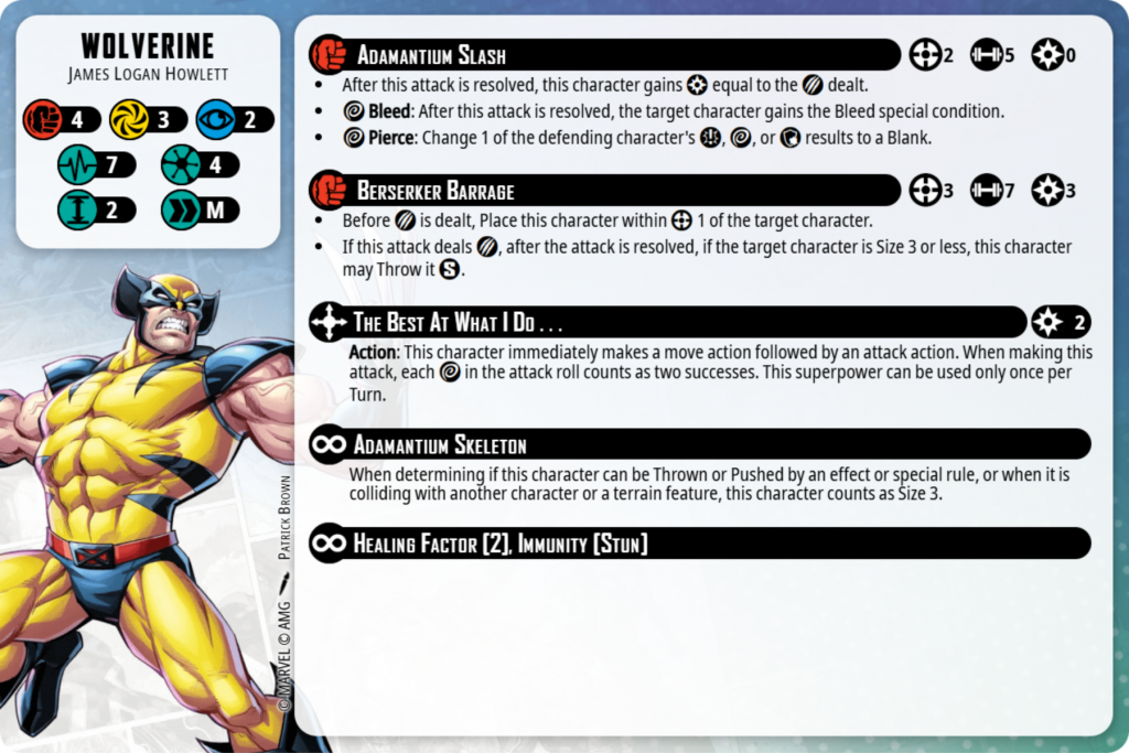 It’s worth noting that he loses some of his ability to score VPs on his injured side, so you mainly want to take Wolverine in a team that chooses violence over scoring.