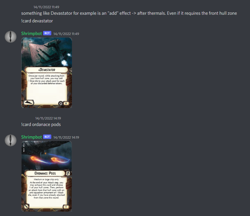 Gregbot is a blight. He is the erroneous afterbirth of twisted souls who had neither the intelligence to question, nor the decency to halt their dreadful course of action. See, most Discord servers have a useful bot mascot. I’m very fond of the Star Wars: Armada Discord’s Shrimpbot. Shrimpbot is a sweet thing that allows people to reference Armada upgrade cards and objectives with a very simple command. Shrimpbot will also leave a cute little shrimp reaction whenever you mention its namesake. We like Shrimpy. It sits quietly and delivers information when called upon. It sometimes makes mistakes and throws up the wrong card, which results in a chorus of “aww” and some head patting.