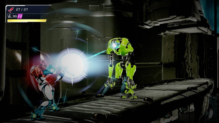 Enter the E.M.M.I. robots. Metroid Dread picks up after the events of Fusion - finally moving the series forward chronologically - and sees a Metroid DNA-enhanced Samus traveling to the planet ZDR on a tip that surviving X parasites have been found there. Once on the planet she's promptly beaten and stripped of her powers by an unknown Chozo (birdman) assailant and then left to pick up and defend for herself. Oh, and there are six nigh-indestructible federation robots (called E.M.M.I.) that were sent there ahead of her and have been reprogrammed to kill her.