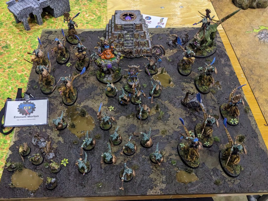 Andy was a great opponent, super polite and helpful. I told him I had been practicing but wasn't super experienced yet with AOS GTs and he made sure we both had a good time. His models were painted excellently with a swampy theme and lots of great highlights and blends.