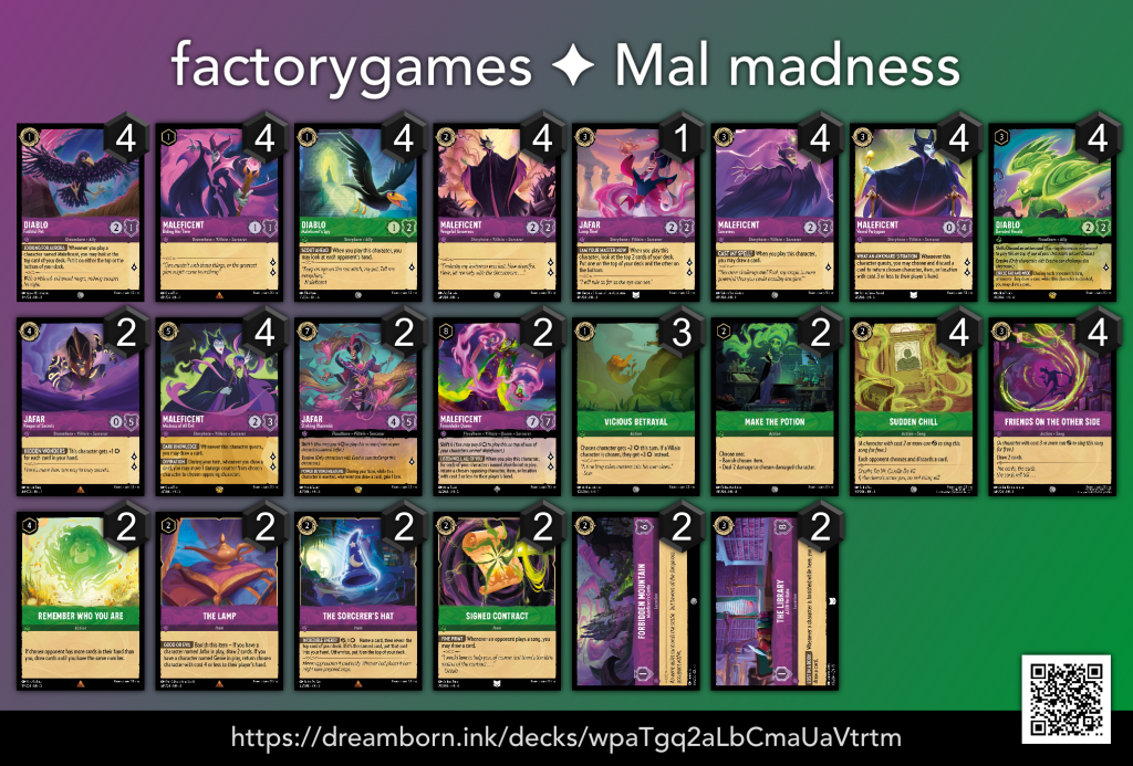 As always, I feel inclined to disclaim that this deck is meant to be a fun-to-play, thematic, and inexpensive option (despite the Diablos). Lorcana is very much a game about stories and I find the most rewarding decks are those that have a strong central story rather than a hodge-podge of Deemed Most Effective cards. You aren’t gonna win the big tournaments with this, but you might upset somebody with a $500 meta deck!