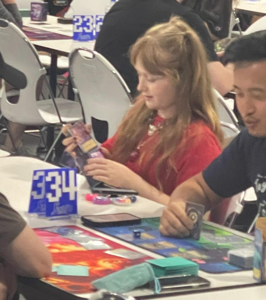 In reflection, this way of thinking kind of flew in the face of what I want out of a TCG. I like the big Hail Mary combos. When I was heavy into MTG, I liked the black/blue denial decks, my whole thing was that I liked to play cards that punished the other player simply for following the rules. I was out here trying to figure out the right degree of ramping cards to run. But her approach was so cut-to-the-quick I found it kind of shocking. And in practice, her deck was so hyper-focused on doing the action that you have to do to win the game that it was kind of shocking.