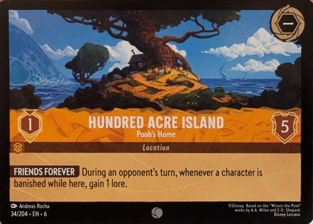 There’s a couple of solid locations here too; Hundred Acre Island – Pooh’s Home - gives you a one lore rebate for any character banished there, making me think a strategy using Moana to move Hei Heis there to get the lore for that and then Be Prepared-ing them may be a thing. Skull Rock- Isolated Fortress gives you lore for posting up pirates there and a +1 strength bonus, so the combos possible with all these pirates simply write themselves. All the healing, aggro, direct damage, and a couple of songs are here to give you a good taste of what these inks are all about.