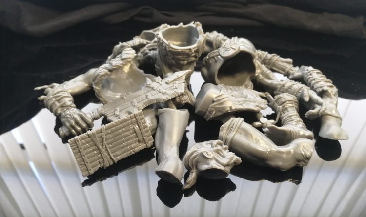 The pieces themselves had a strong odor and I gave them a quick clean with soap and water, which improved things and removed an oily residue. My first impressions of the miniature itself were very good however - the pieces were well cast with very little flash and few mold lines, and the detail was crisp and clean. The sculpt has a lot of character, and I was pleased to discover it had a choice of heads and arms, as well as a a few decorative pieces that were optional. This means I could absolutely include two or three of this kit in the same army without worrying about then looking exactly the same.