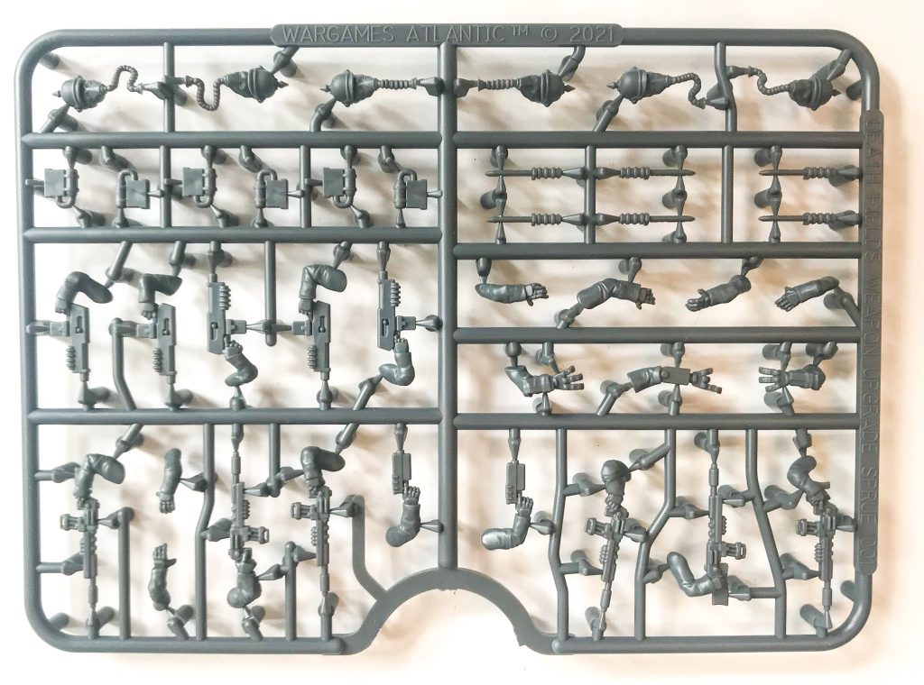 Death Fields Weapon Upgrade sprue, adding in laser rifles and solid slug throwers that fit right alongside other ranges, a new range of WW1 German inspired gas masks and a fantastic plethora of bionic arms.