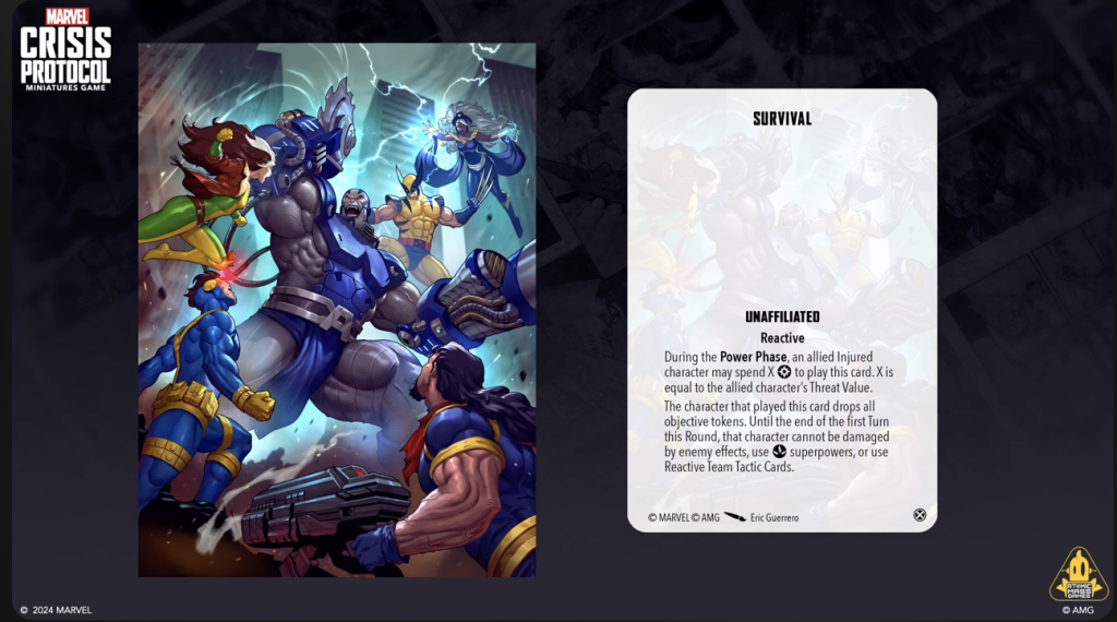 This will probably be the biggest news from this panel. AMG has released a new list of TTCs that are being rotated out of the game. They did make sure to point out that rotation did not mean they would never come back to the game, which is the case if a card is banned. Some staple TTCs like Eyes on the Prize, Mission Objective, Marked For Death among others are on the list. Additionally, they announced a complete re-working of Mystique’s TTC Deception as well as X-Ceptional Healing. These are now Stolen Identity and Instant Recovery, respectively, and are available to print and play with immediately from here.