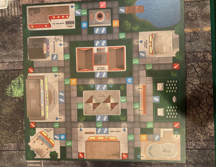 The board is simple enough. The town of Tall Oaks is laid out with over a dozen key locations, the sort of places you’d expect to find in an 80s horror movie: The Mall, The Arcade, etc. It is worth noting that this is largely cosmetic as the specificity of the locations rarely matters. Each character/monster archetype is appropriately cartoonish but easily identifiable with at least a couple well known horror movie properties.
