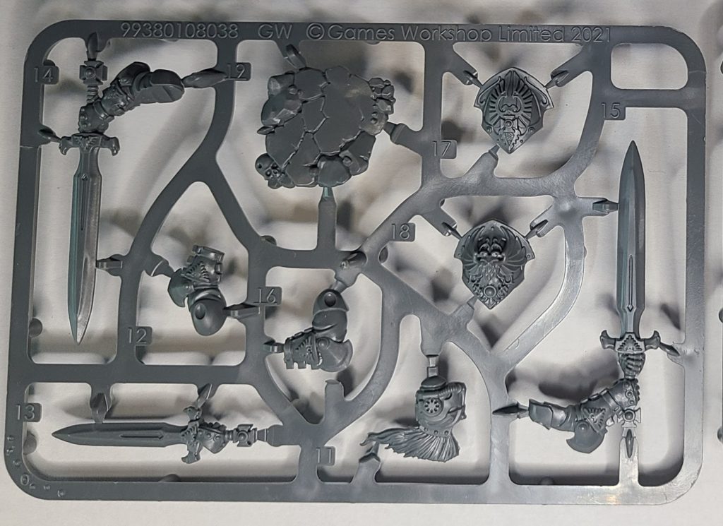These sprues give you multiple ways to build the Champion, with double-hand and dual-wielding options (the main sword is the same size - whether you choose to wield it single or double-handed).