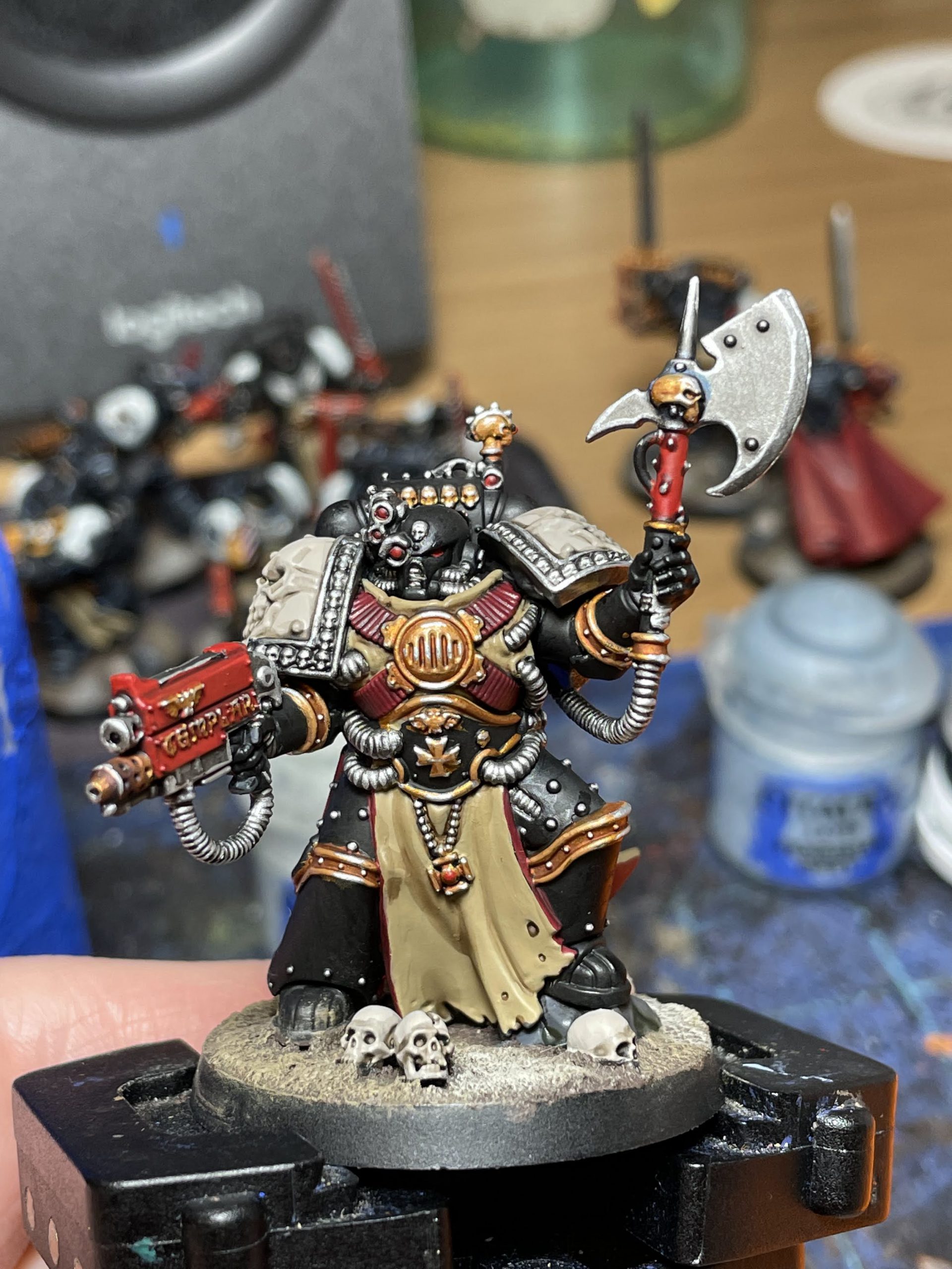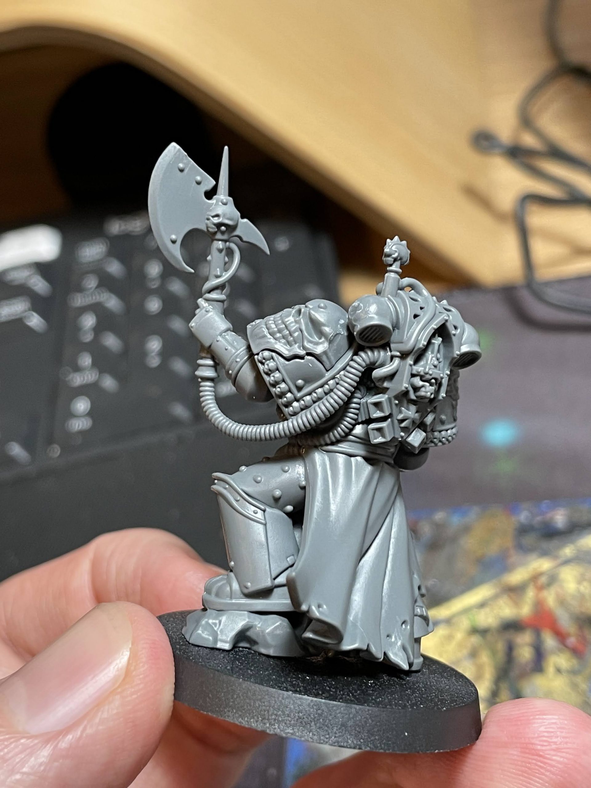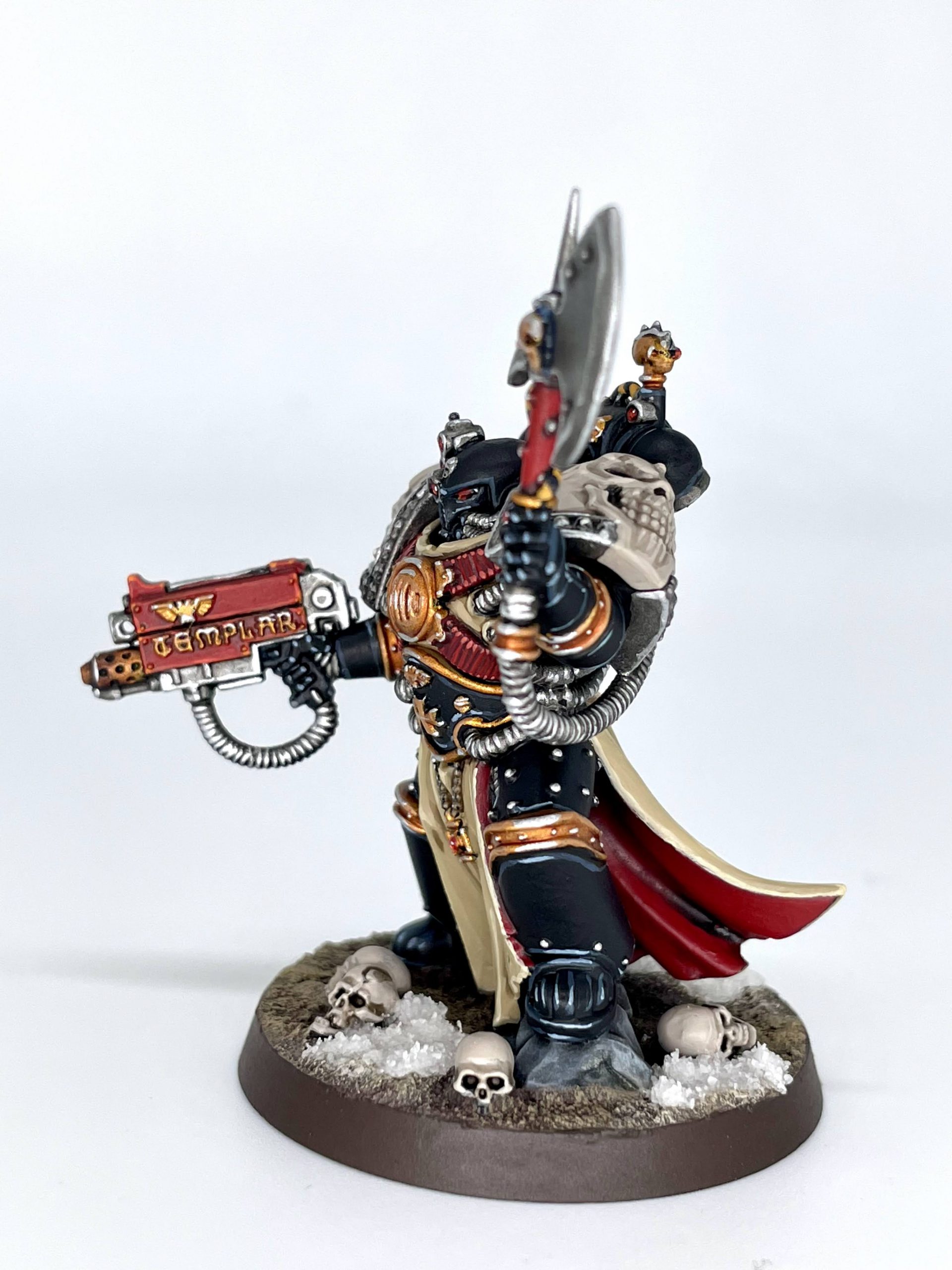 Warcom did reply to someone, somewhere on Facebook that you could use this dude as either Primaris or Firstborn. The Templars codex gives Primaris Lieutenants access to a Firstborn-sized combi-flamer which further confuses the issue, but if he's Firstborn he's a real chonker of a Firstborn. I'll be using him as a Primaris Castellan, but look to your heart and it will give you the answer you want to this extremely meaningless question.