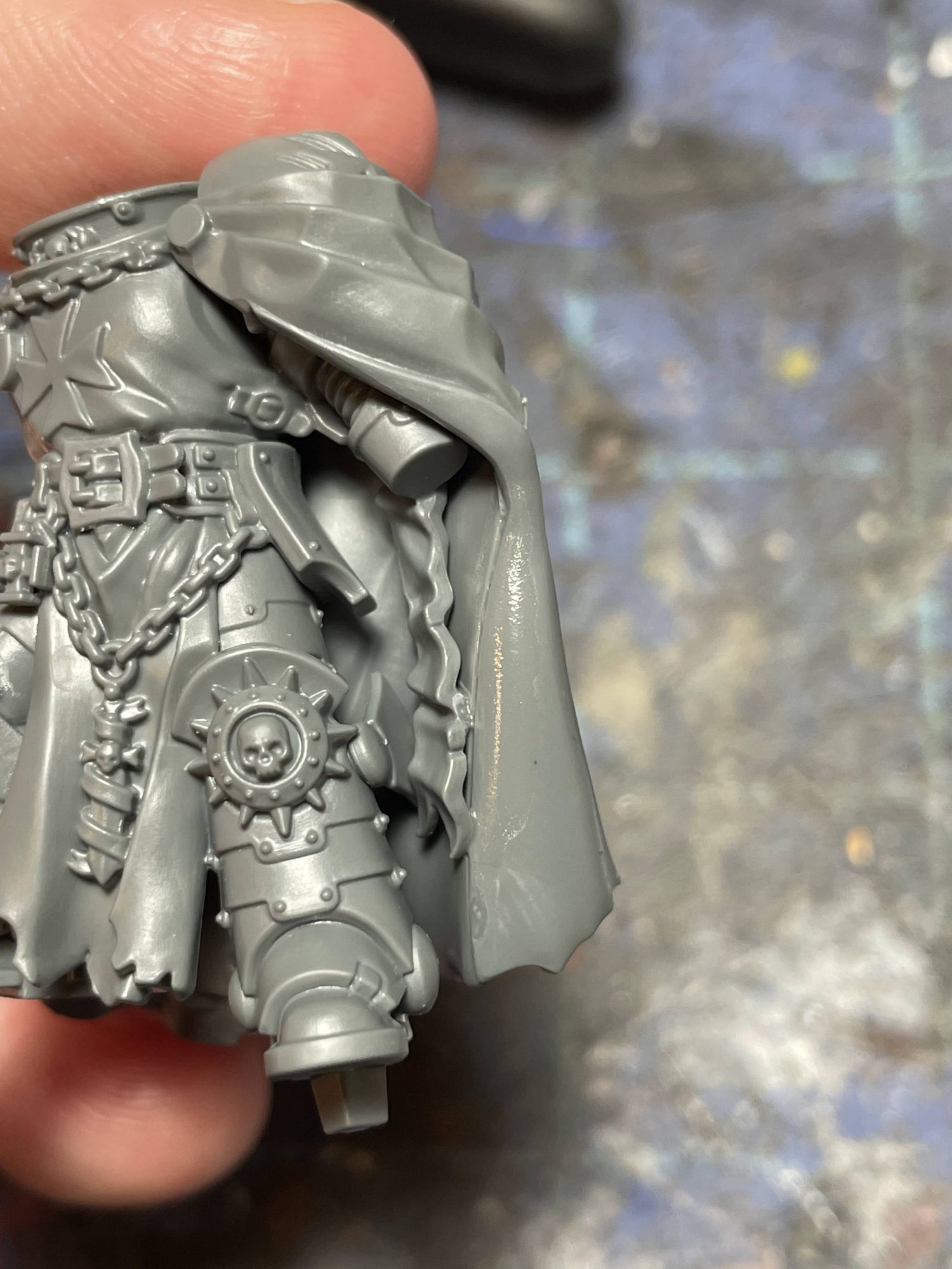 Jack: I really love sub-assemblies, and I felt very let down by Helbrecht. The sculpt itself is glorious, but it ends up being incredibly hard to paint. The cape takes up an absolute ton of space, and access to it is blocked by both legs and lantern. There's no reasonable way to assemble him without the cape on, as the main cape piece includes the back half of the torso, and the seam we talk about above is from part of the cape that locks in over the rest of the body. I'd strongly recommend keeping both sword and lantern separate during painting - both glue on at pretty clean joints that won't be a problem when painting, and open up a lot of access to the armor. I also can't see any way to do an adequate paint job with everything glued to the base, even GW's instructions say to paint before that final assembly step.