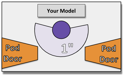 Q: Which part of a Drop Pod should I measure distances from and to, especially if the model has been assembled so its doors can be opened or closed?