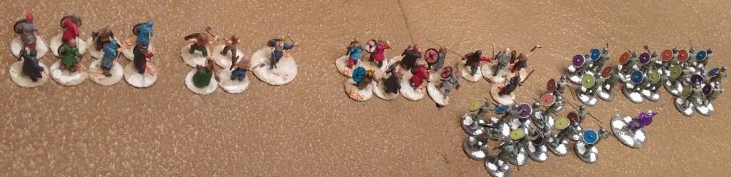Our first team tournament force, 4 points of Vikings and 4 points of Pagan Rus.
