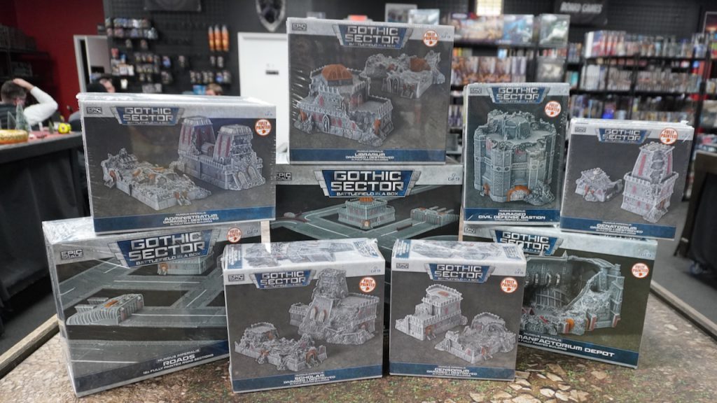 Mundus Imperialis is a range of pre-painted, cast resin buildings that are designed in the classic Gothic style with which any fan of Warhammer would be familiar. With the addition of roads, they are truly offering a great solution to quickly getting a high quality Legions Imperialis or Adeptus Titanicus table right out of the box. That being said, the range lacks any “Warhammer” specific iconography making it great for any “Epic” scale game set in a futuristic, sci-fi setting.