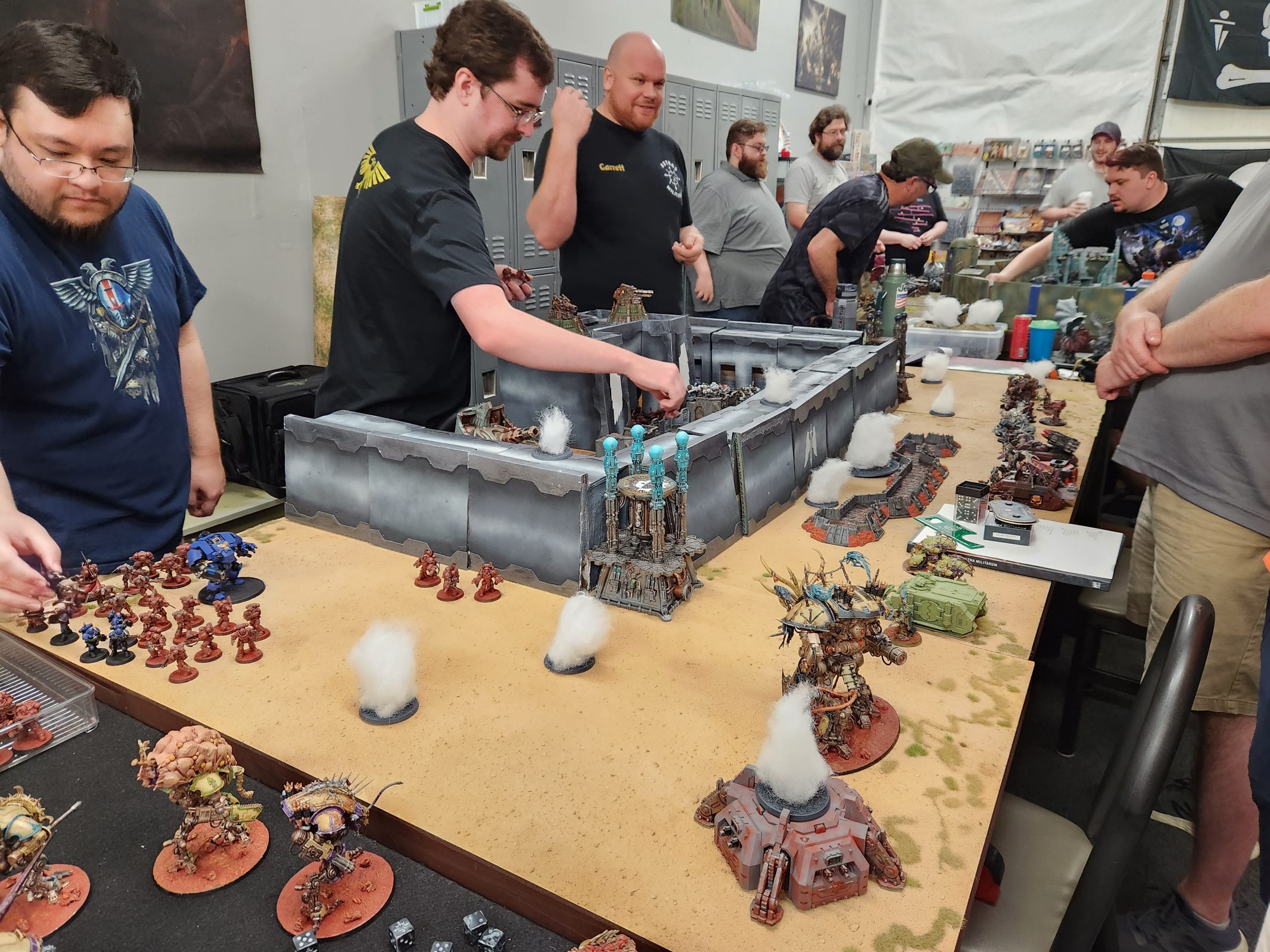are we doing? Well, that's a good question. Our solution at the Houston event was to create four large Megabattle tables, where each table featured 4 to 8 players, each with 500- to 1,000-point chunks of their Orders of Battle. This allowed us to do a few things:
