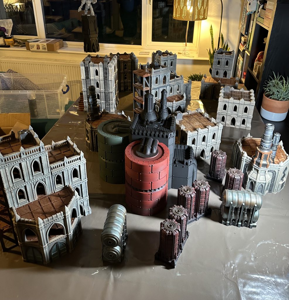 Broadly there were going to be three themes for the printed terrain, made up of a hive city, factory world, and airfield. With that in mind browsing Sacrus Mundus’s catalogue we selected Omnis Prime Hive District, Phoebian V Struck Airfield, and Phyrus II Forge Planet. All of these packs offered a variety of sizes, with the potential to create evocative battlefields using the largest pieces as narrative hooks.