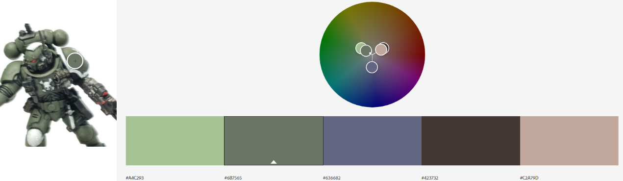 here, for example this thread of citadel hex codes will let you punch them into the Adobe Colour Wheel site. Seriously google "XYZ brand paint hex codes" and you'll find them. Muck around with them until you settle on the colour your are going to paint the majority of your model with.