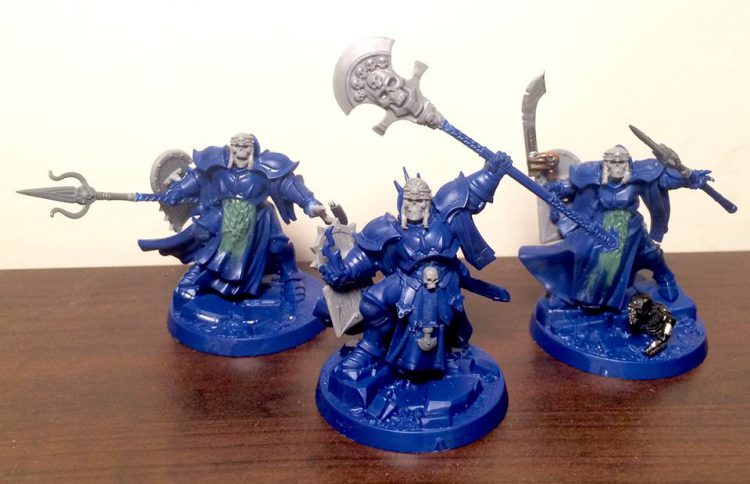If these Stormcast Eternals simply had their heads swapped for extremely cool/spooky skulls and shields glued on, I would consider them kitbashes. The fact that they also have their weapons cut, new ones pinned in place, details sanded off, and new details sculpted in greenstuff means that they’re now considered proper conversions.