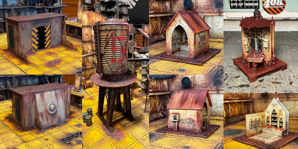 And then terrain. I started 2 large projects this year, my Trading Post and a hab block, both of which are sitting waiting for details. I did manage to build and paint a few other things, a water tank made from a tin can, a completely Cricut cut elevator shaft building, and a shrine. I also painted up a gang relic built by @Sol_Vince on Instagram. I also made some new barricades, and found that I still need more…
