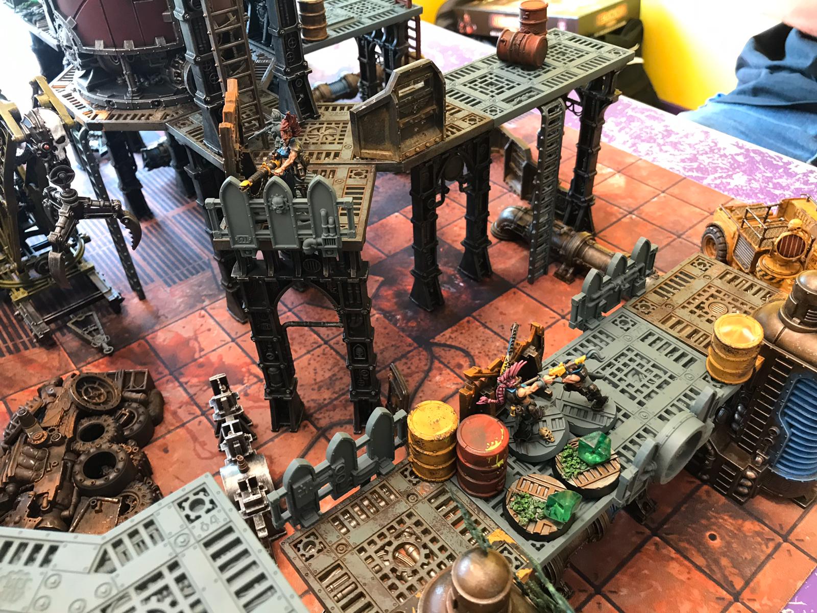 In the Necromunda Underhive release, many scenarios were specified as being for Zone Mortalis (ZM) terrain, ie 2D maps played on tiles full of tight corridors and fully Line of Sight (LoS) blocking walls, or Sector Mechanicus (SM) terrain, ie more traditional wargaming tables with fully 3D terrain, tall gantries etc. The former would likely be 3’ x 3’ or smaller, the latter was recommended as 4’ x 4’. This distinction has slid into disuse in more recent releases like Dark Uprising (DU). ZM terrain is now the term for the plastic set released in DU, which can build 3D terrain, platforms etc. In practice, there is no reason you couldn’t play any scenario on any type of board, and recent books don’t specify. The type of tables you play on will make a big difference to how your group experiences Necromunda. New players who play exclusively on full size tables with high walkways, long lines of sight and little substantial LoS blocking cover will see a game that heavily favours gangs built for long range shooting. If starting on the DU terrain and the 2’ x 2’ play mat it comes with, then new players will find that close combat and templates dominate and any shooting over 24” is irrelevant. Ultimately, for most the type of terrain your group uses will come down to practicality - what you have, where you meet to play, and how much space is available.