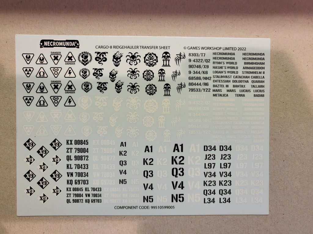 It's also worth mentioning that both the Cargo-8 Ridgehauler and trailer kit come with this amazing transfer sheet. It's got all of the house iconography, some warnings, a TON of planets, and plenty of identification numbers.