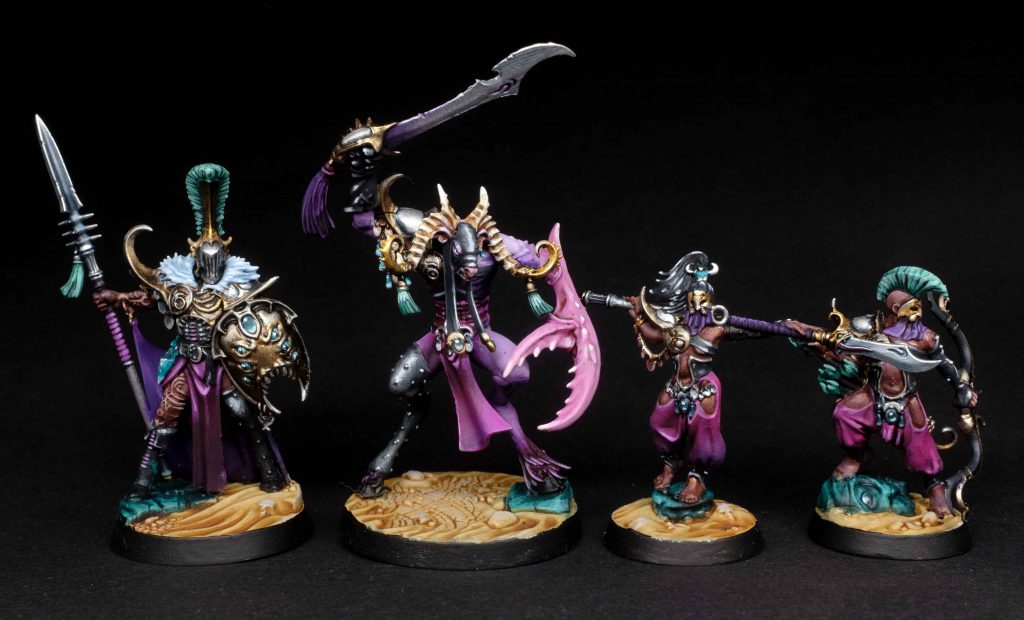 A solid collection of mortals from the Direchasm box showcasing the ornamentation and excess of the Slaanesh style. Two Blissbarb models, though one is sporting a melee weapon this time and they both come with very neat masks not found in the AoS archers box. It's a rather specific use case, but they would make compelling Slaaneshi Death Maidens if you find the androgynous one of the pair female enough for an Escher gang. Outside of this, you're getting some of the same classic “exotic” GW flair as the rest of the Blissbarb lineup, and you're better off looking into the Seekers and Archers kits for more options and a larger headcount.