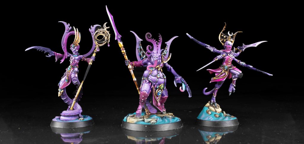 Starting off with some of those daemon models are the oddly aquatic Thricefold trio. These are great sculpts with a lot of character, which unfortunately limits them a bit for mortal repurposing.