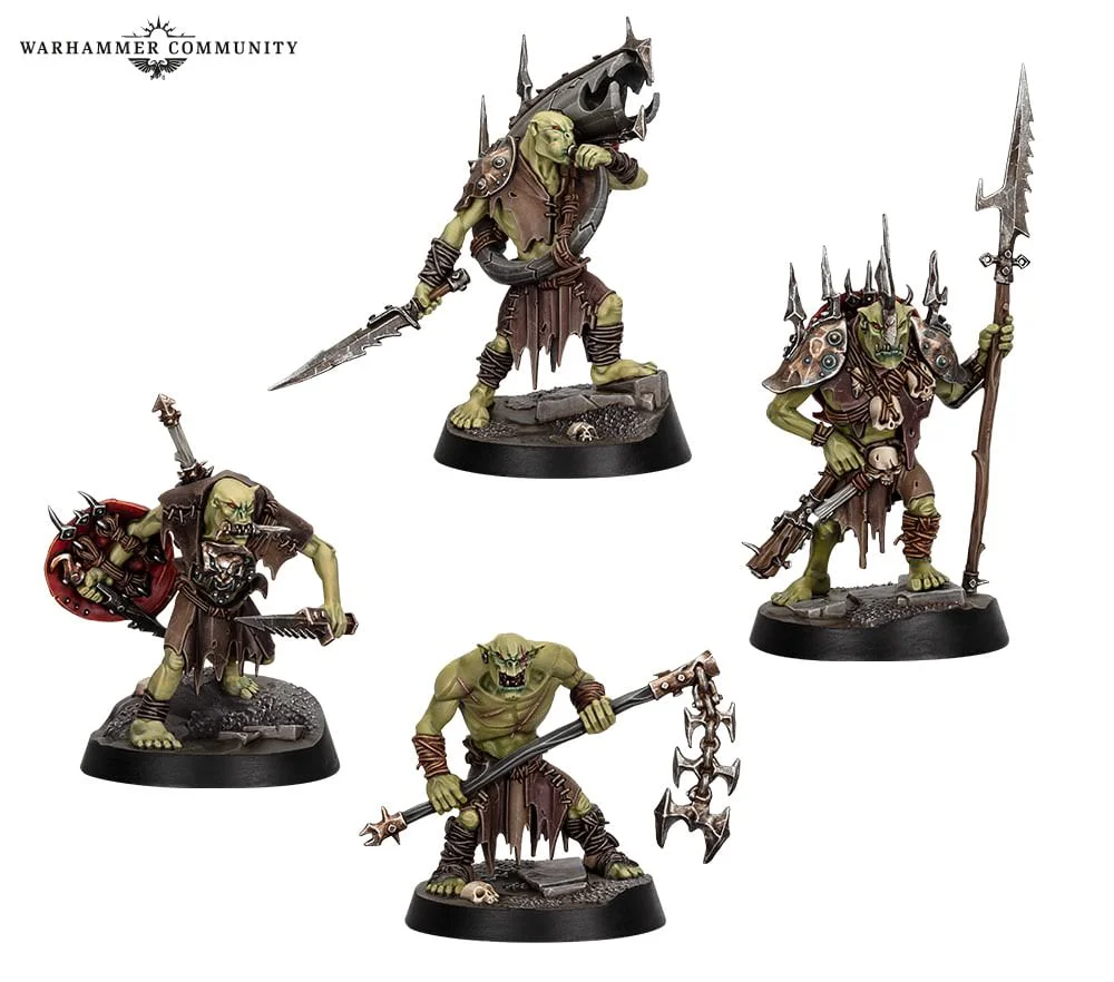 It’s no Jokaero, but a monkey coming at you wielding a knife with its tail? Yes. The big parrot has a great pose and makes a solid-tier pet choice or stand-in for a single Grapplehawk or Sheen Bird. The Gnoblars have no inherent place in the future, but they’re great sculpts of characterful models. Of all the small greenskins across Underworlds, these are most likely to make it into a project of mine. Looking at them now, they might be ripe for a Cherub head swap?