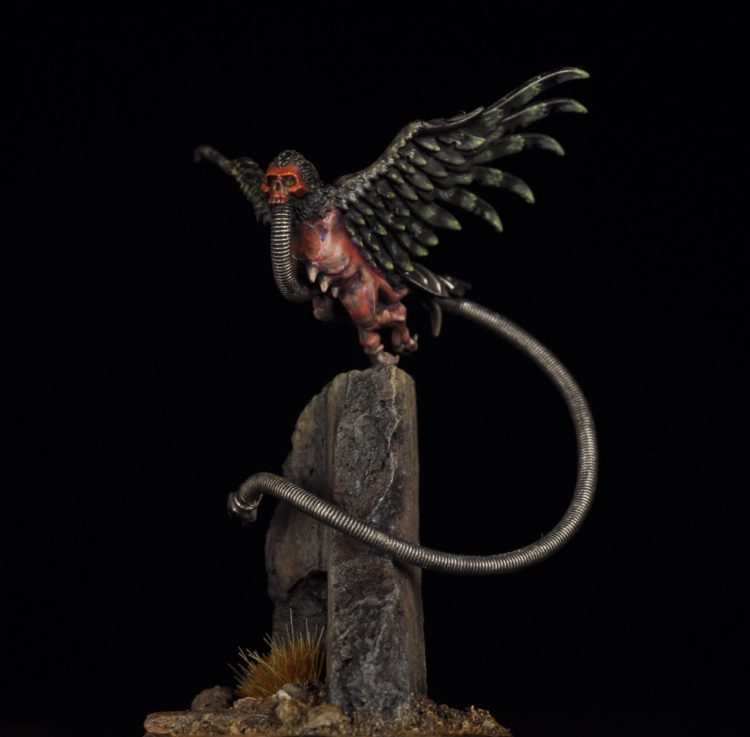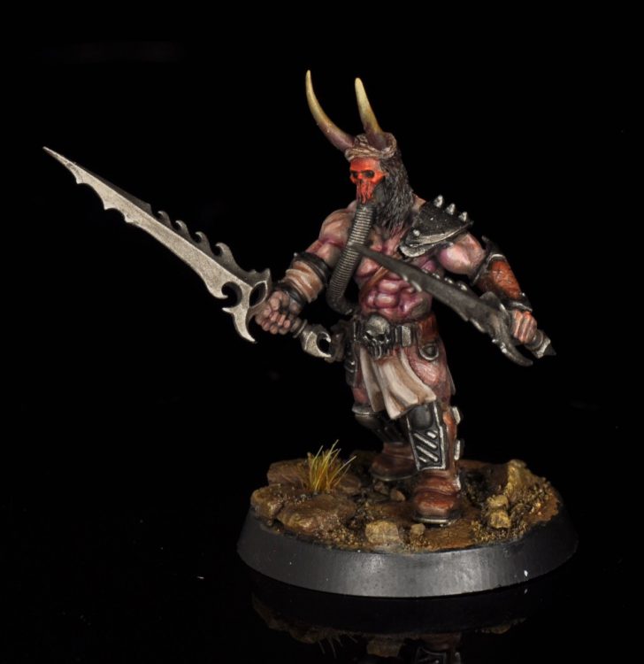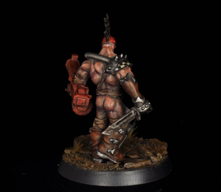 This disciple is armed with two swords. They are based on one of the John Blanche illustrations. Probably not a great load-out gaming wise, but when these disciples were made it was just about what felt cool.