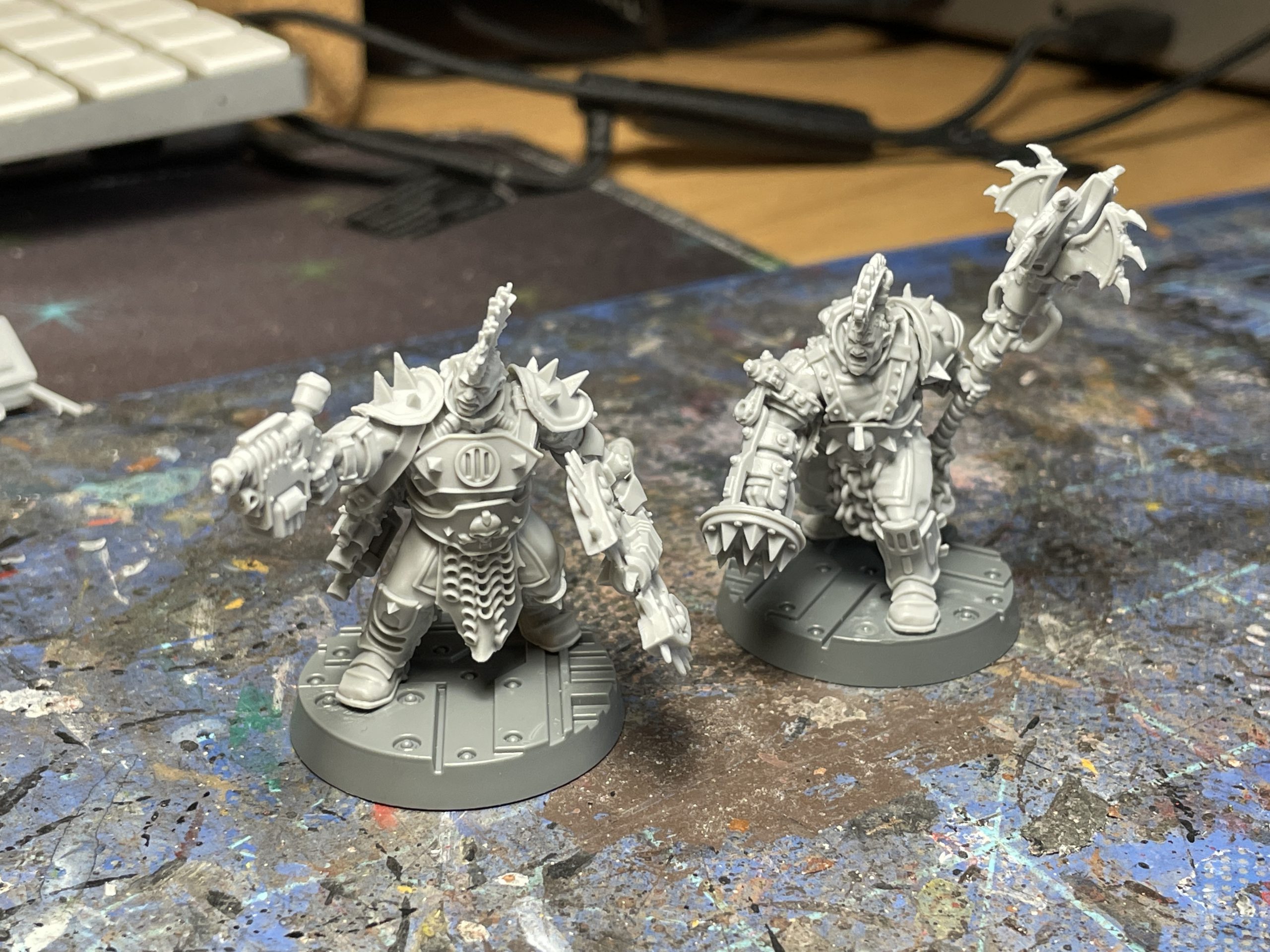 For the most part, these were straightforward enough and could be built without instructions. I only had to look back to double check a few things because some bits had broken in transit - namely Durgan's weapon haft and the Champion's bolter strap. Once I got those figured out, the rest was easy. The only pain point here is a literal one that any Chaos player should be familiar with, which is applying pressure to a spiky bit until the glue bonds. That meat tenderizer on Durgan Kill-Fist's Kill-Fist dug into my thumb pretty bad when I was holding it in place, as did the various spiky shoulderpads. My one pro tip would be to turn the Champion's head a bit towards his gun arm. The stiffness of his pose that I alluded to in the introduction is markedly reduced when he isn't looking straight ahead.