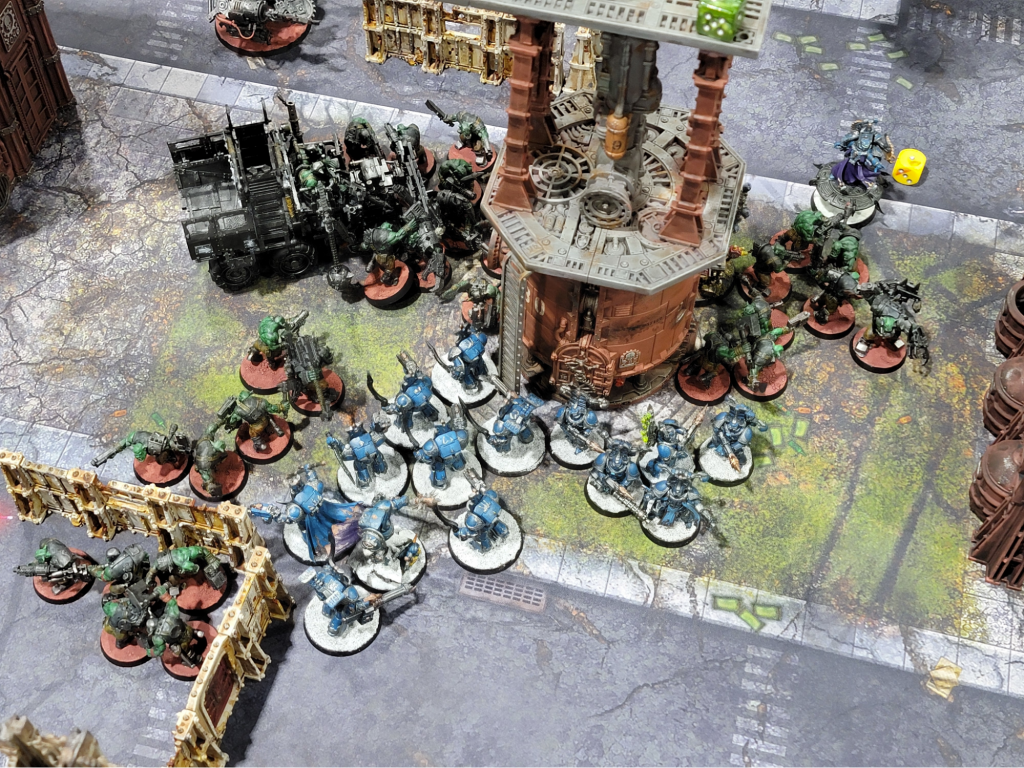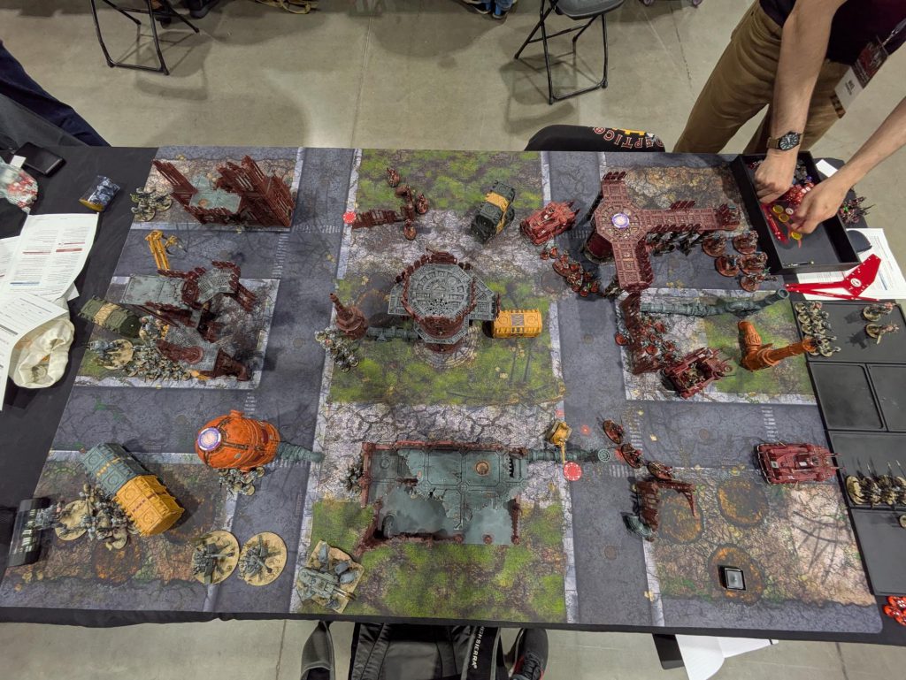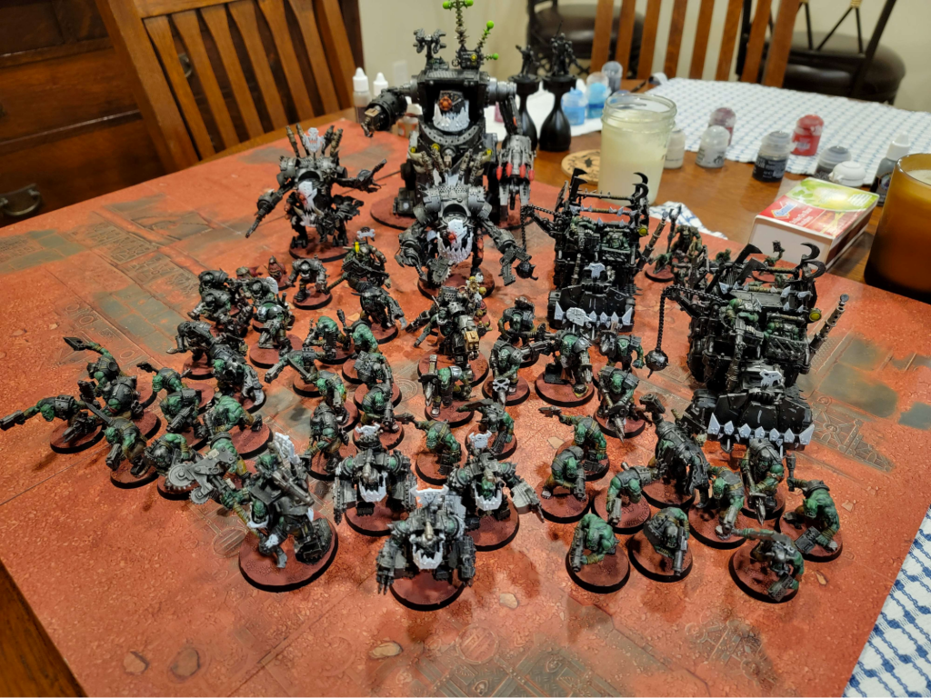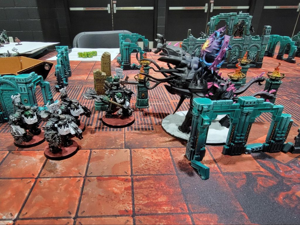 Also I’d be remiss if I didn’t shoutout the second bit of karmic retribution that occurred that day after Greg and I’s match. I set up my Morkanaut Da Good Eye o’ Tin Skull and the Tankbustas Good Loot Wreckas to lay into Magnus and I pushed all the Dread Mob buttons I could. And when the dust settled, I had achieved 0 damage into Magnus across (I believe at my last count) 17 4++ and done 9 mortals to my Morkanaut and lost half my Tankbustas through hazard checks. Sometimes you Push Dat Button, sometimes it pushes you. We had a good laugh, but alas there was no coming back from it and the Thousand Sons and the Ambull from below took the last game.