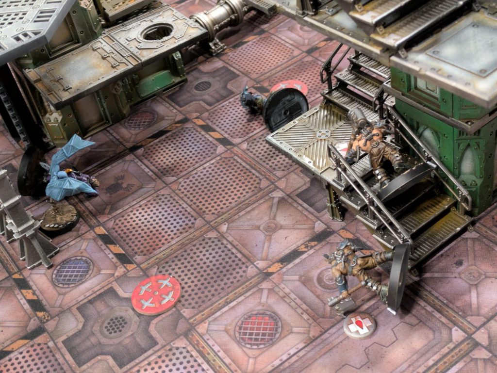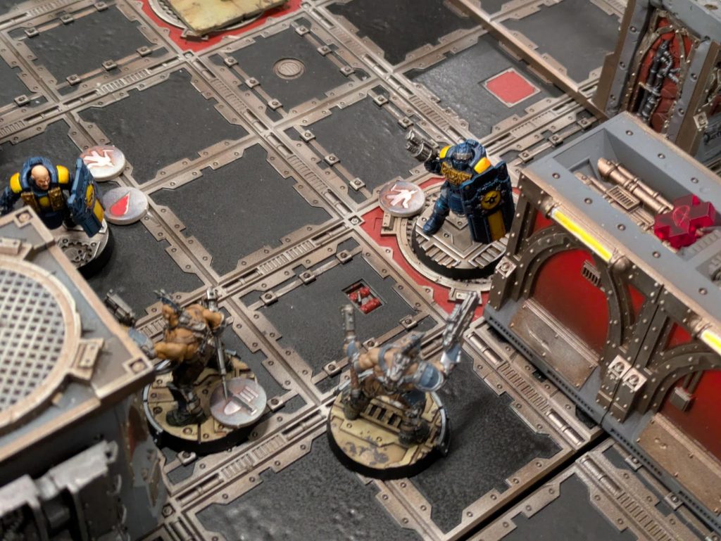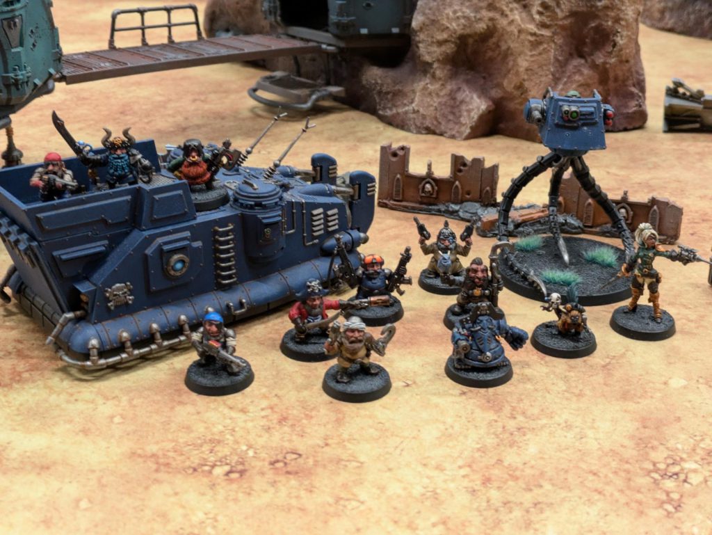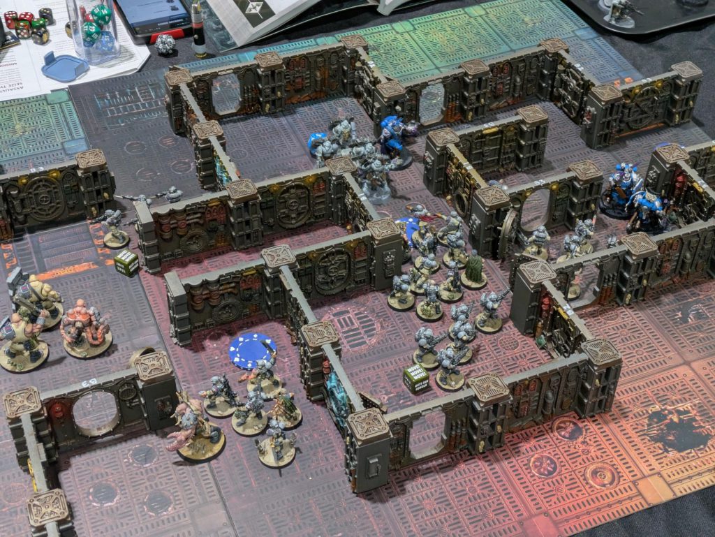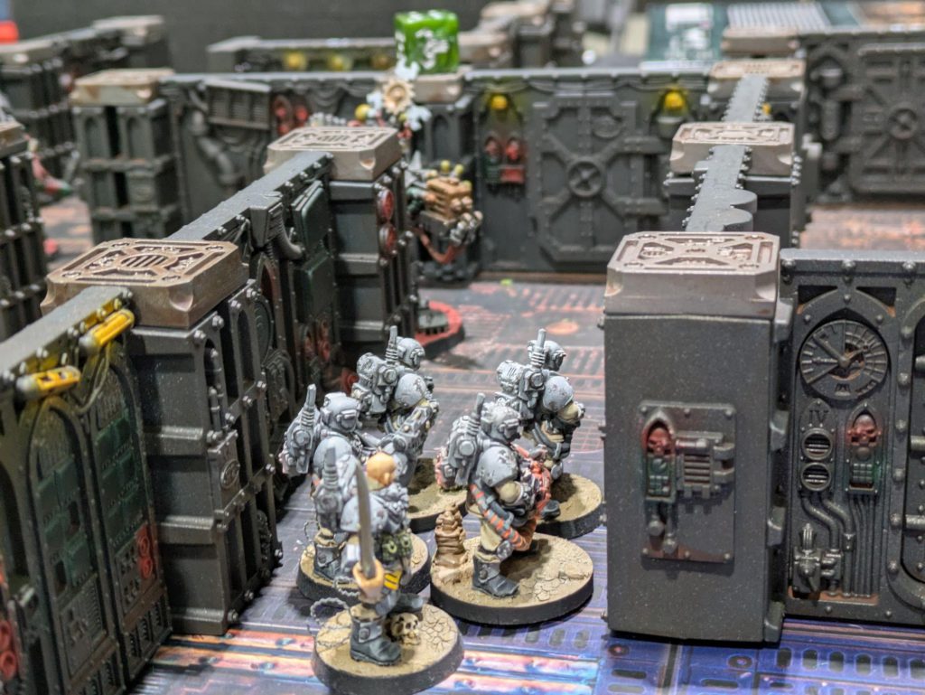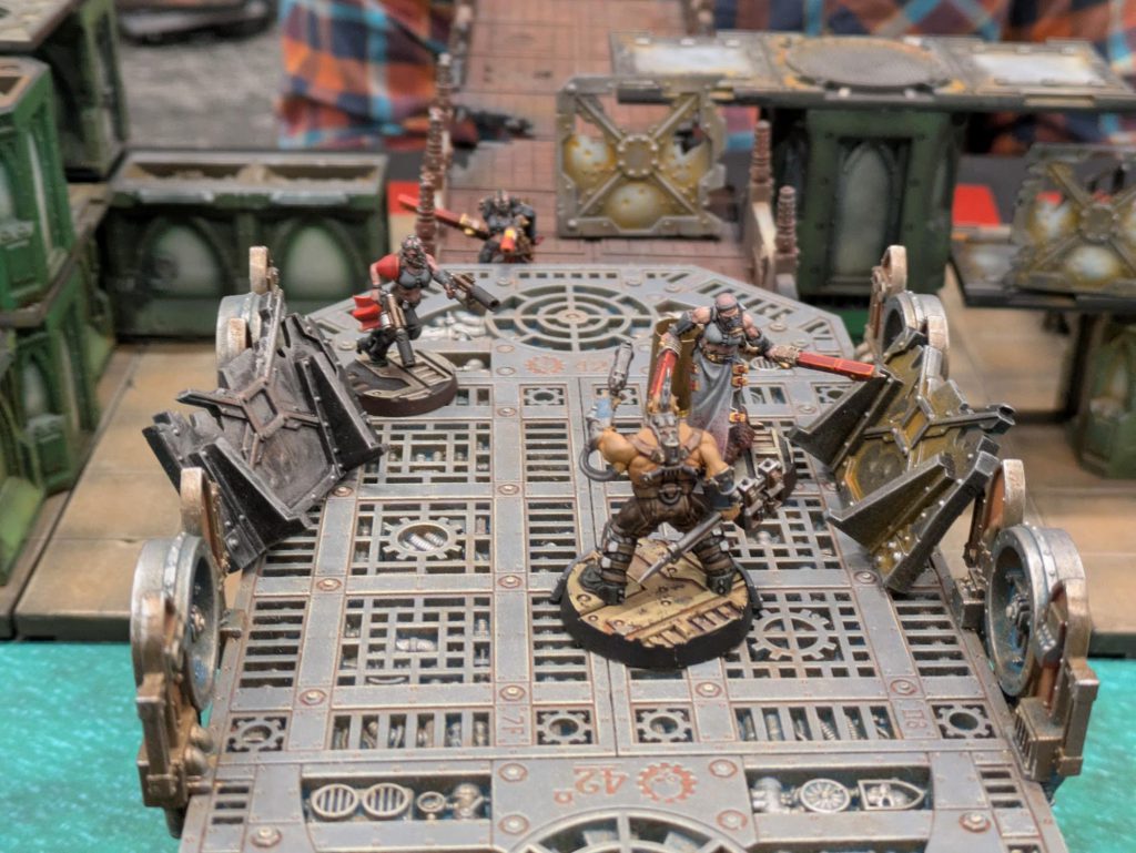 This game was also a blast because I was missing my leader and stimmer, so I had no good answer for Elijah’s riot shields. My idiot gangers nearly got Knockback’d clear out of the room they were trying to take over. Eventually combat shotguns saved their bacon.