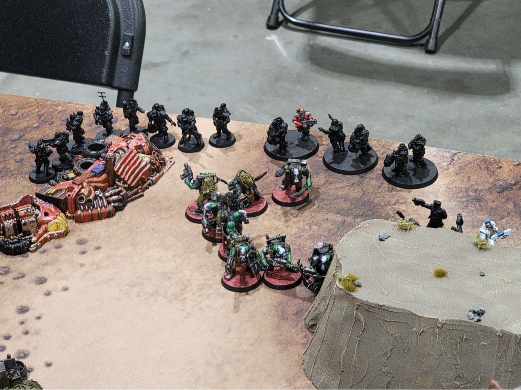 I brought my renegade guard narrative army, the Urdeshi 409th. I’m running a lot of infantry with the Recon Element detachment, which means most of my games are gonna take the full 3 hours. I am playing for Team Chaos.