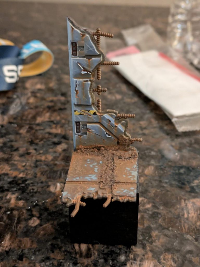 I regrettably missed the GH dinner, because I succumbed to the temptation to sign up for way too much stuff at registration. I spend my evening in a four hour painting class on rust and weathering techniques. I don't get to be social, but I do paint a very nice wall.