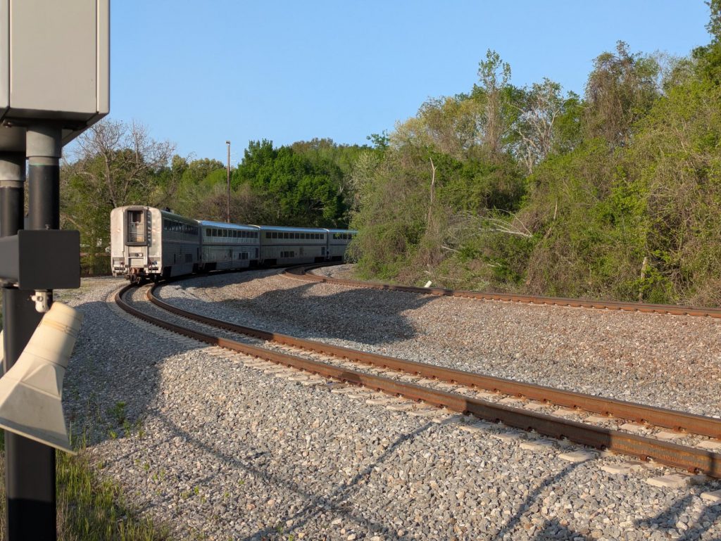 Neither of us sleep quite as well this time as we did northbound, for whatever reason. I wake up at 3 AM during our station stop at Little Rock, Arkansas, but I manage to get back to sleep and sleep until 6 AM, with us a little north of Texarkana. I take another moving train shower before breakfast in the dining car.