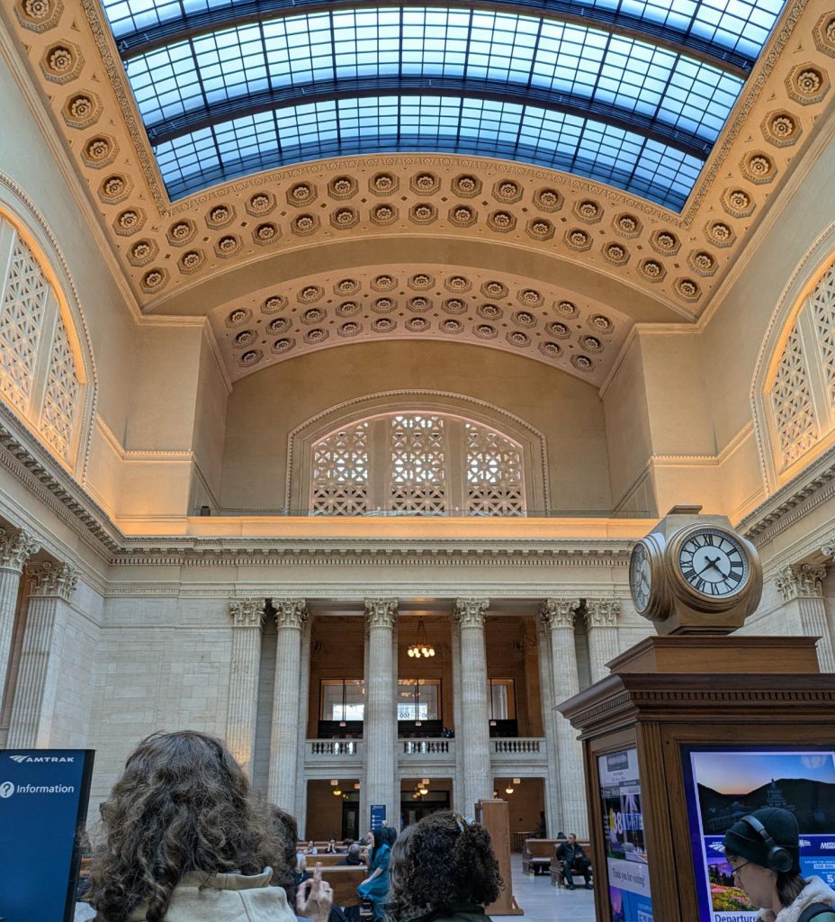 Greg: Our train has been running on time all the way into the Chicago suburbs, but we run into a delay just outside of Union Station and end up arriving 30 minutes late. No big deal, and we are able to make our connection.