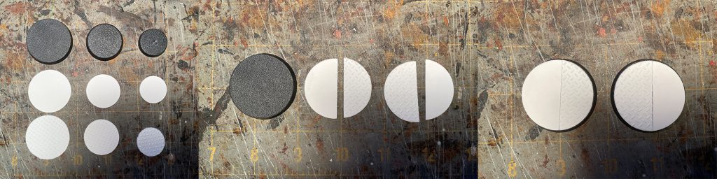 I use a Cricut diecutter to make a large amount parts for my terrain, including all of my floor tiles, and because of that, I leverage it to make my basing.