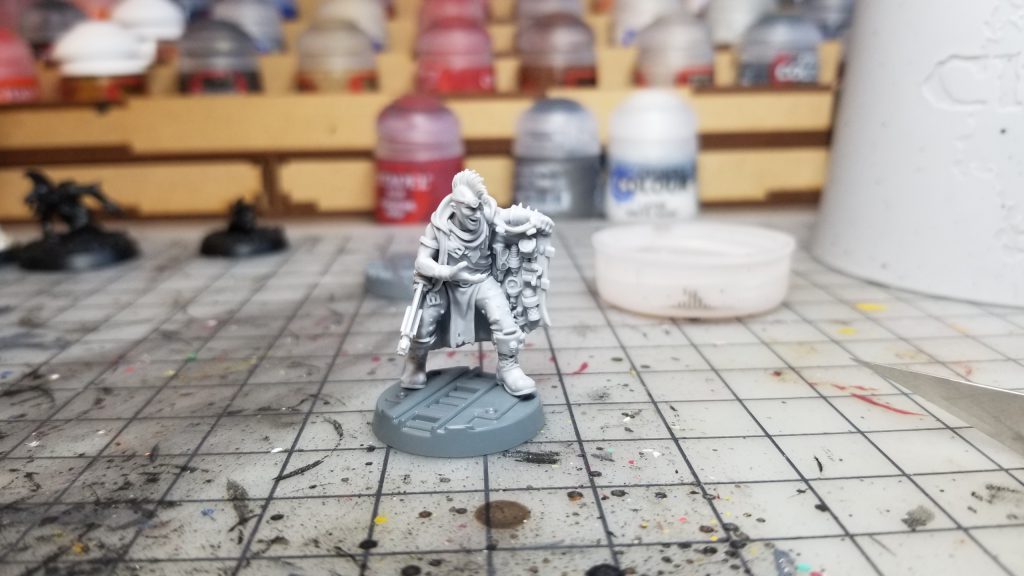 DYLON: I approached these guys like the rest of my Necromunda stuff with my usual prime: Army Painter Leather Brown undercoat with an Army Painter Skeleton Bone zenithal spray on top. I then drybrush the entire mini with white and then it’s ready to go.