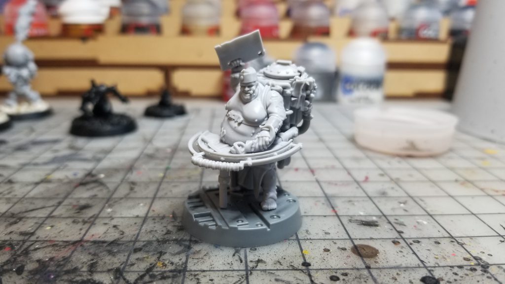 The truly shitty part of this model is this awful mold line that runs right down the middle of the Slopper’s Necromunda brand/scar:
