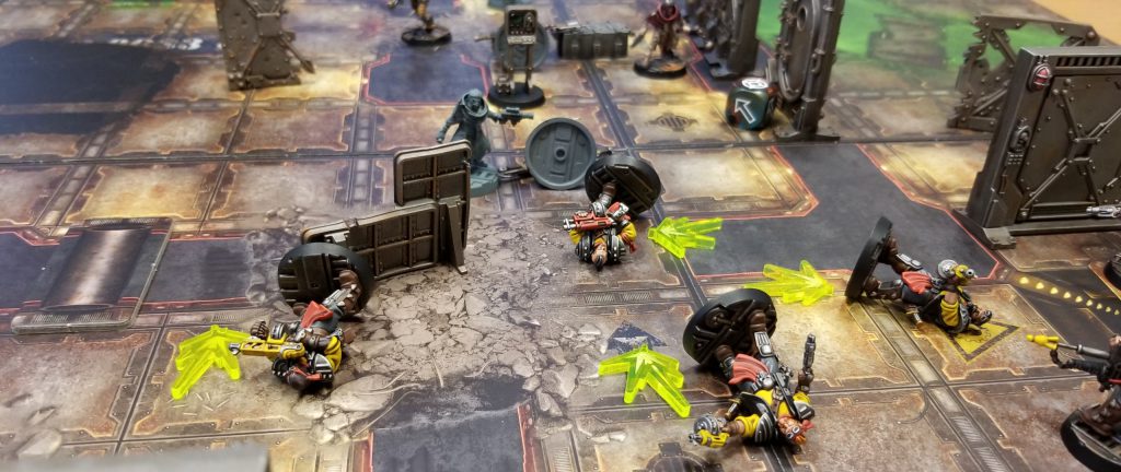 Finally, you’ll need your play aids. Measuring tape, dice, counters, roster, and fighter cards. We strongly suggest that you have fighter cards made up before the battle so you can reference them during. You can also use them to track your condition counters like insanity or blaze. You’ll also need Tactics Cards, and these are a frustrating mess. Released in the boxed game and with every gang release, a player would have had to have been extremely diligent to ensure they had access to all ~160 of the Tactics Cards. This is crazy stupid. However, we have a solution for you, because of course we do! The Sex Cannon has written two articles on tactics cards and their use. Go read ‘em!